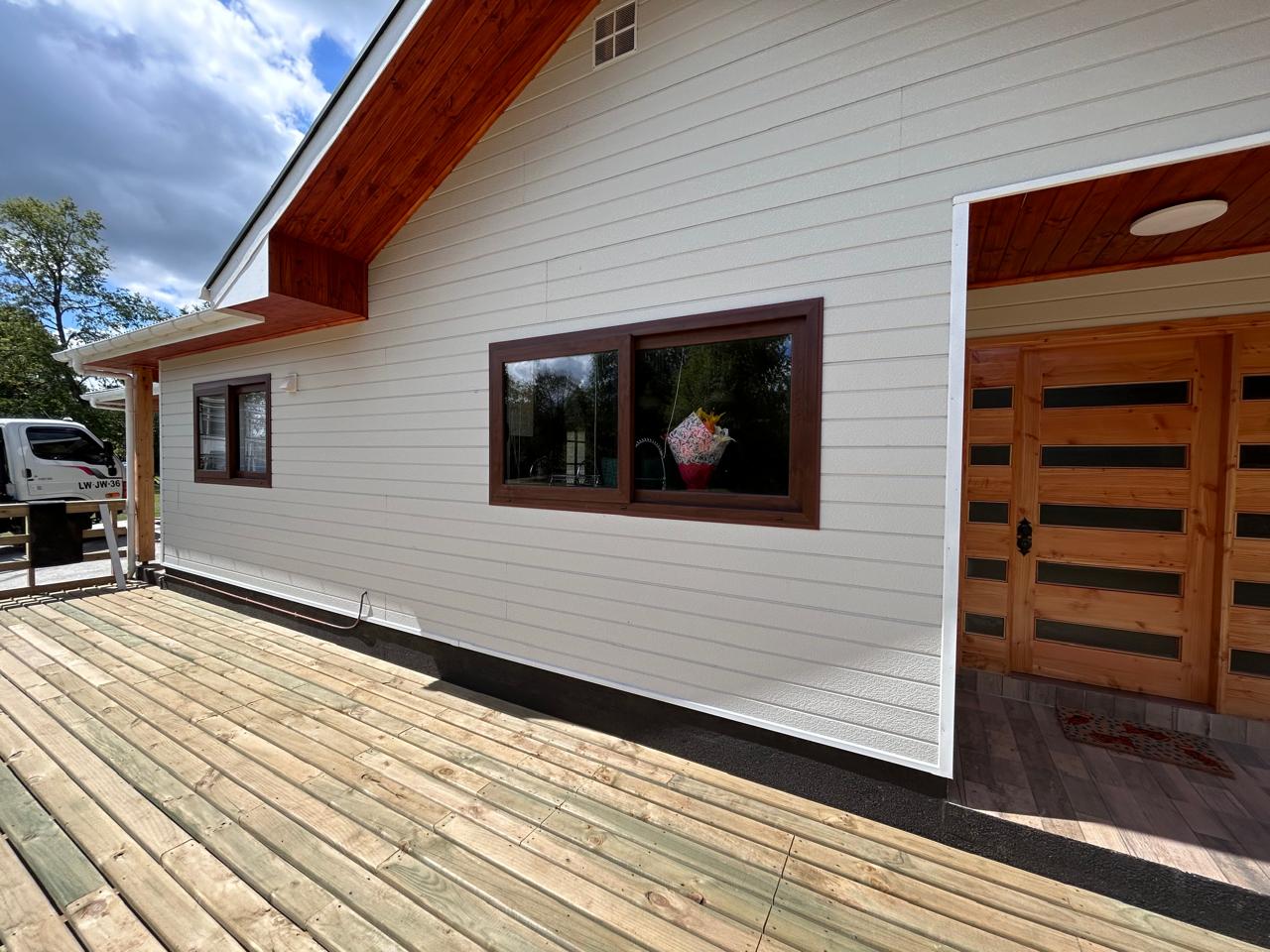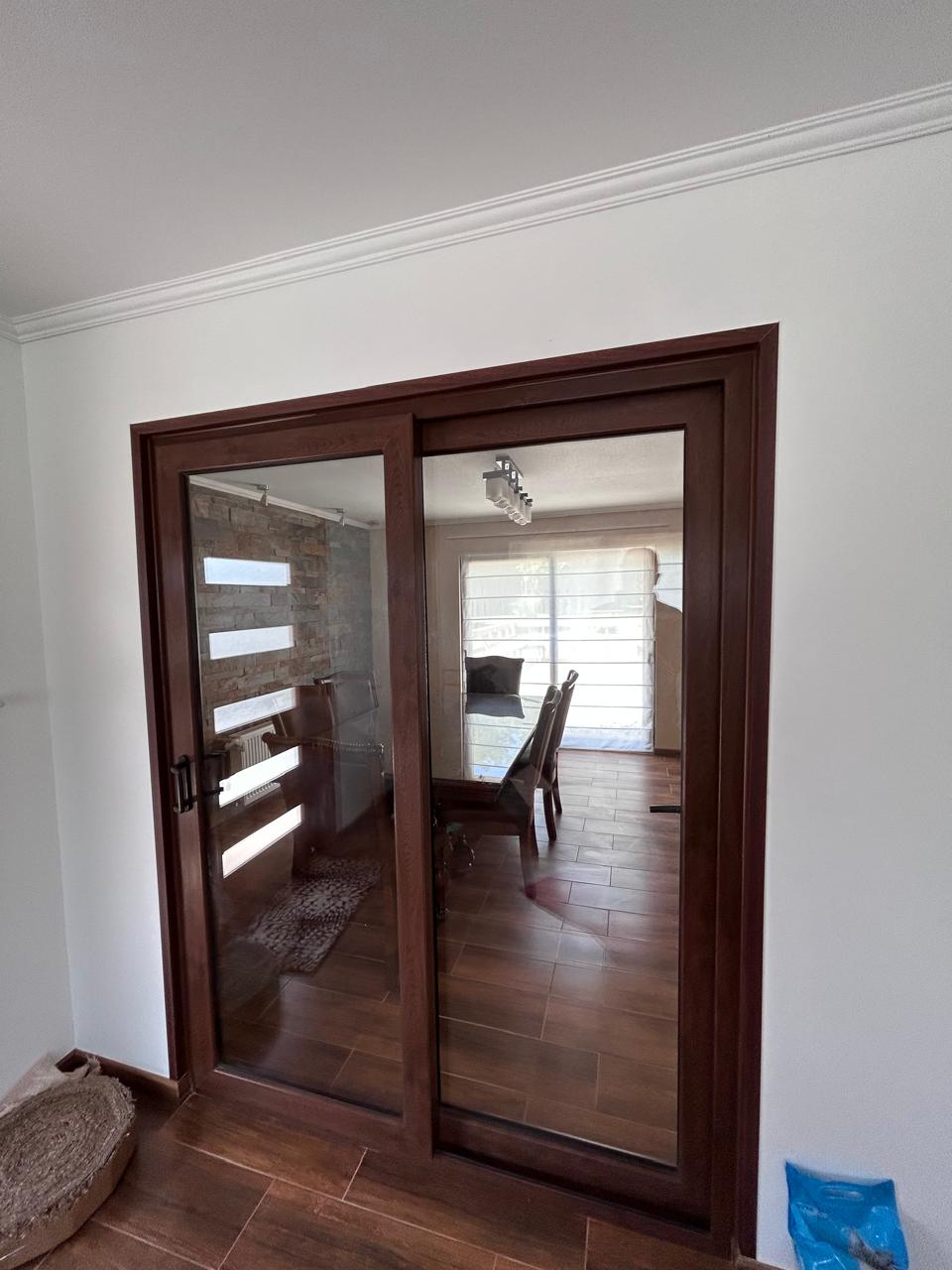 Ventanas PVC color Nogal, cristal incoloro termopanel.