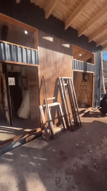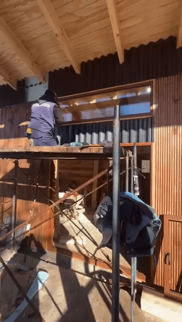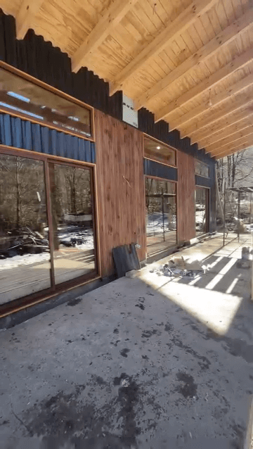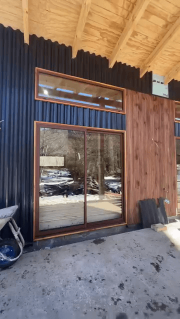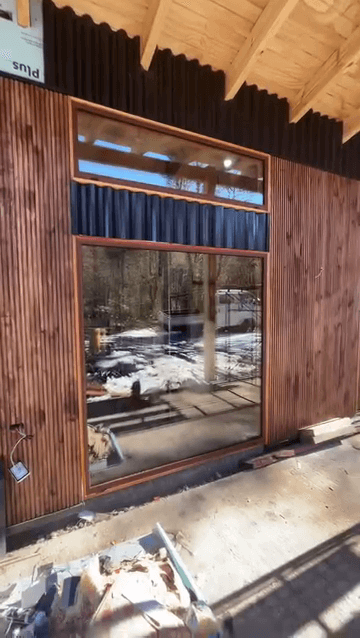 Obra en Malalcahuello. Ventanas aluminio color Roble, cristal termopanel.