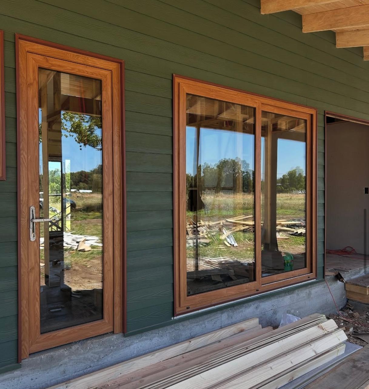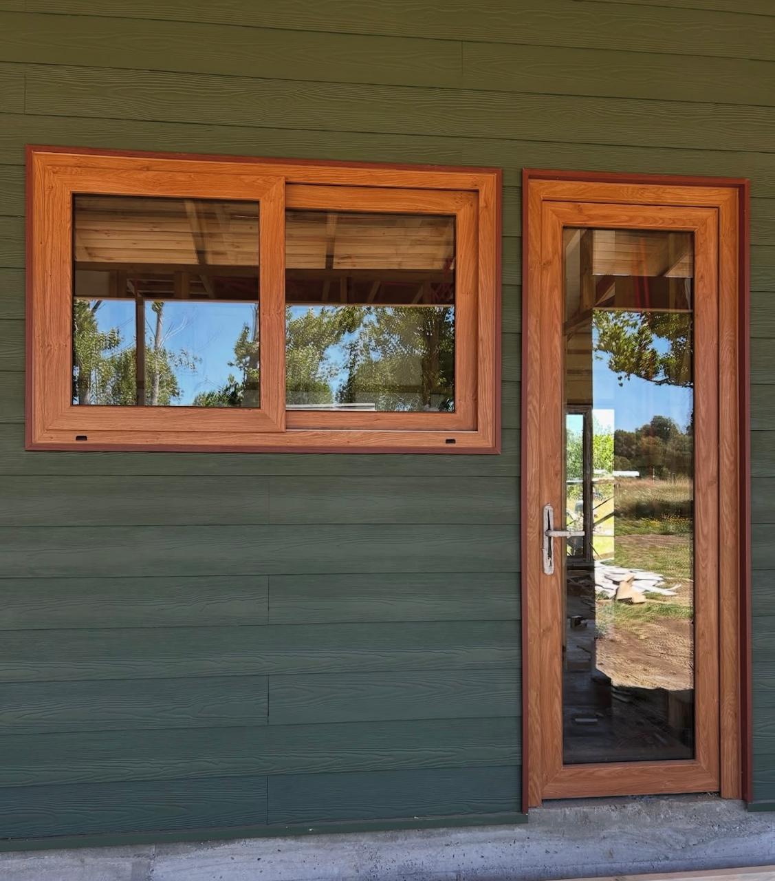 Fabricación de ventanas de PVC color winchester con cristal termo panel.