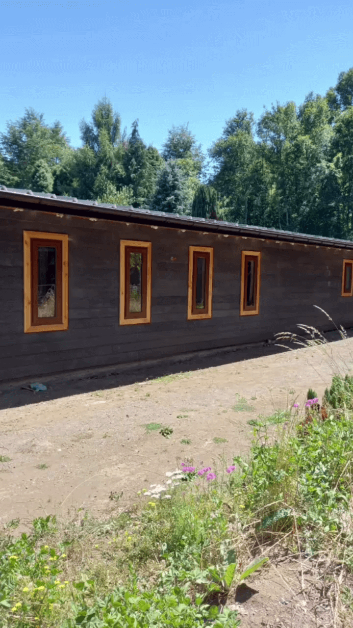 Obra en Pucón, Ventanas PVC color Nogal cristal termo panel.